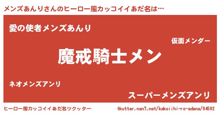 | 女子向けラノベタイトル風あだ名 | 『メンズあんりの卵を拾いまして』 |
