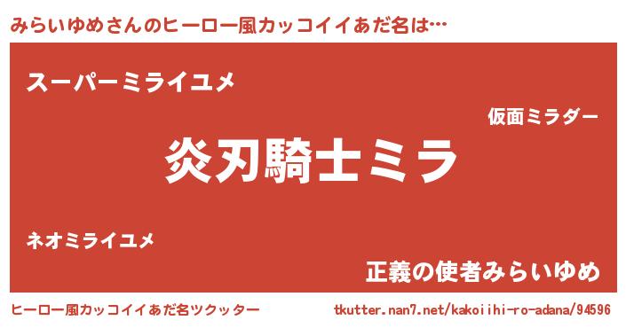 | 男性向けラノベタイトル風あだ名 | 『みらいゆめの嫁は女の子じゃないと思った?』 |
