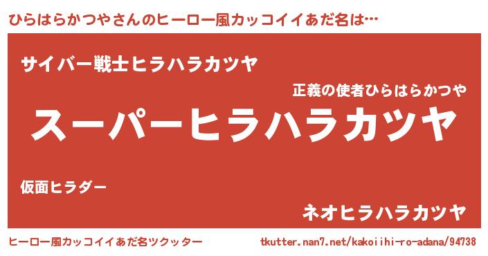 | 女子向けラノベタイトル風あだ名 | 『(仮)ひらはらかつやのやんごとなき事情』 |