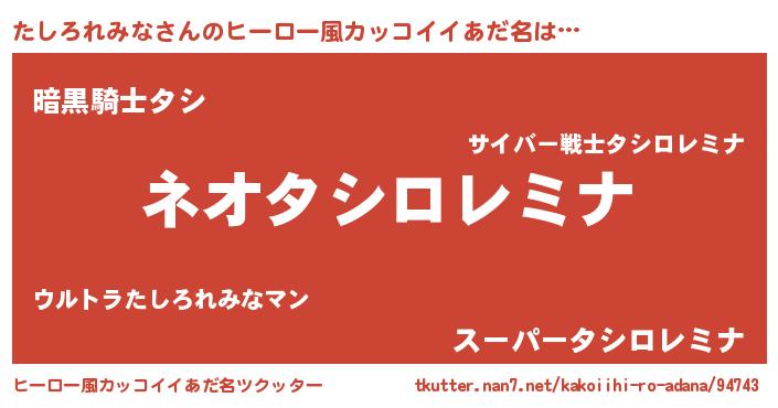 | 意味不明あだ名 | 『永久保存たしろれみな』 |