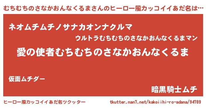 | ヘコむあだ名 | 『むちむちのさなかおんなくるま(小並感)』 |
