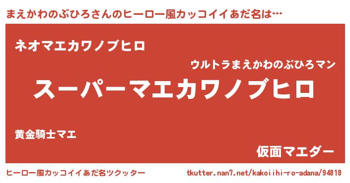 | 男性向けラノベタイトル風あだ名 | 『まえかわのぶひろの憂鬱』 |