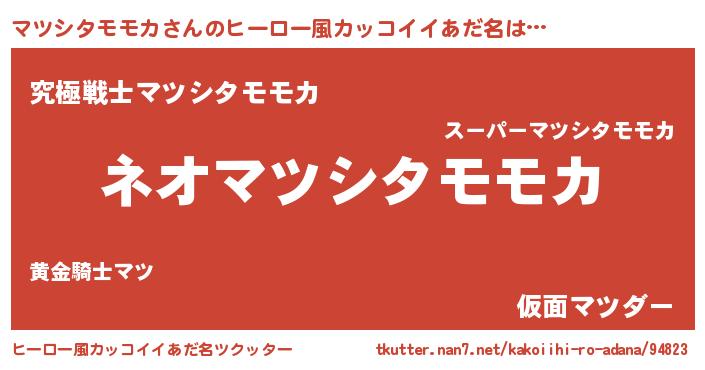 | 欧米人風あだ名 | 『ダルビッシュマツシタモモカ』 |