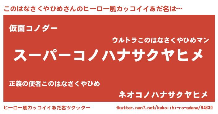 | 男性向けラノベタイトル風あだ名 | 『このはなさくやひめの憂鬱』 |