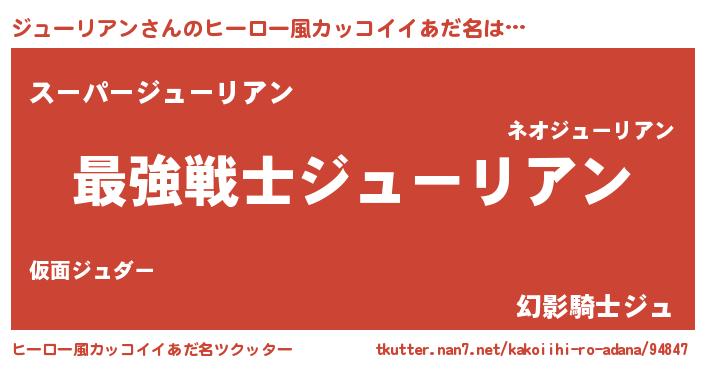 | 男性向けラノベタイトル風あだ名 | 『Re:ジューリアンから始める異世界生活』 |
