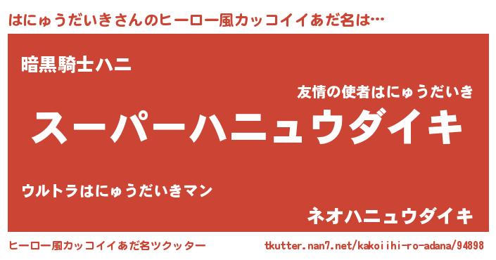 | 胡散臭い通販商品みたいなあだ名 | 『億万長者になれるブレスレット…その名も「はにゅうだいき」』 |