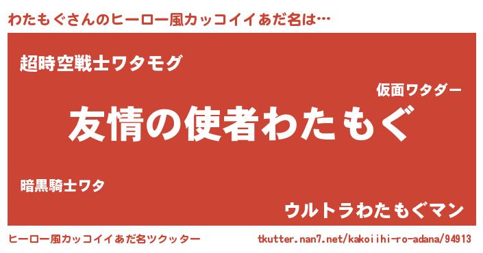 | 男性向けラノベタイトル風あだ名 | 『おまえをオタクにしてやるから、俺をわたもぐにしてくれ! 』 |
