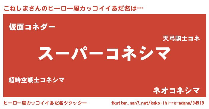 | 男性向けラノベタイトル風あだ名 | 『こねしまの憂鬱』 |