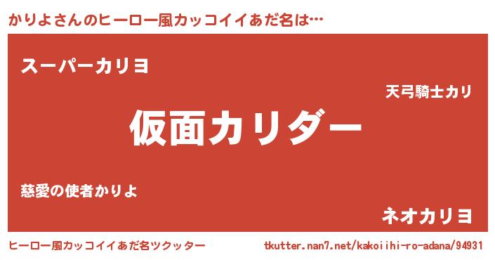 | 男性向けラノベタイトル風あだ名 | 『この素晴らしい世界にかりよを!』 |