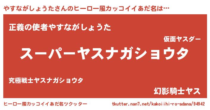 | 男性向けラノベタイトル風あだ名 | 『ヤスナガショウタアートオンライン』 |