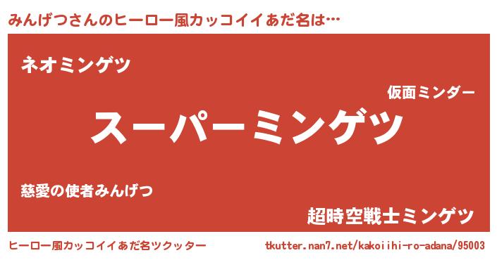 | 男性向けラノベタイトル風あだ名 | 『みんげつの憂鬱』『ミンゲツスレイヤー』 |