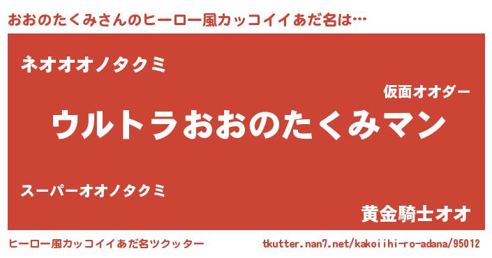 | 女子向けラノベタイトル風あだ名 | 『おおのたくみの玉の輿計画!』 |