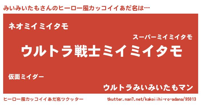 | 意味不明あだ名 | 『自称みいみいたも』 |