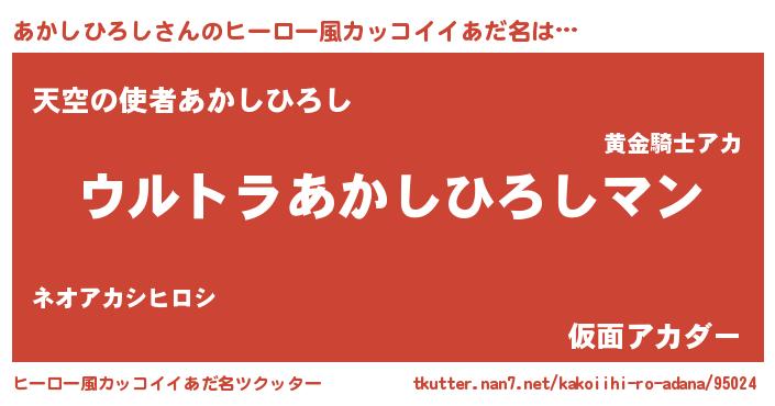 | 男性向けラノベタイトル風あだ名 | 『転生したらあかしひろしだった件』 |