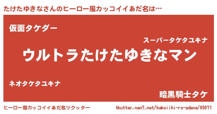 | 男性向けラノベタイトル風あだ名 | 『うちのたけたゆきなが世界を掌握している!』 |