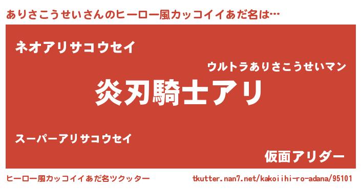 | 男性向けラノベタイトル風あだ名 | 『ありさこうせいに滅ぼされるだけの簡単なお仕事です』 |