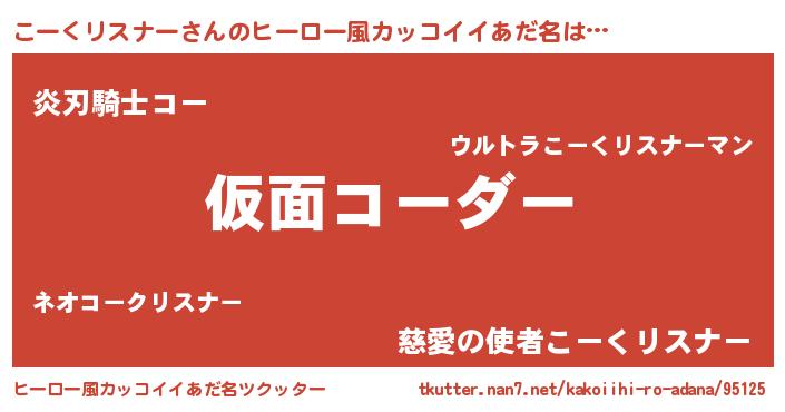 | 男性向けラノベタイトル風あだ名 | 『この素晴らしい世界にこーくリスナーを!』 |