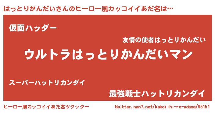 | 男性向けラノベタイトル風あだ名 | 『やはりはっとりかんだいの青春ラブコメはまちがっている 』 |