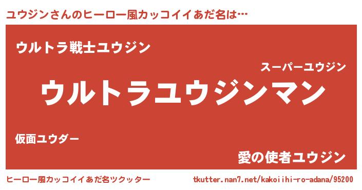 | 男性向けラノベタイトル風あだ名 | 『ユウジン~年齢イコール彼女いない歴の魔法使い~』 |