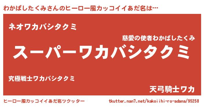 | ヘコむあだ名 | 『わかもー』『わかばしたくみ(笑)』 |