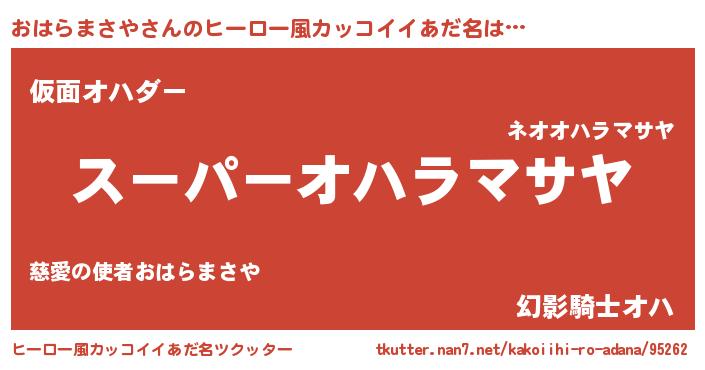 | 男性向けラノベタイトル風あだ名 | 『オハラマサヤアートオンライン』 |
