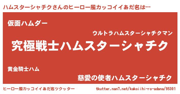 | 伝説のあだ名 | 『救世主となる占い師ハムスターシャチク』 |