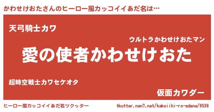 | 男性向けラノベタイトル風あだ名 | 『おまえをオタクにしてやるから、俺をかわせけおたにしてくれ! 』 |
