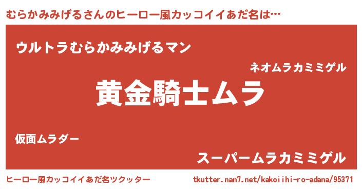 | 女子向けラノベタイトル風あだ名 | 『むらかみみげるは平凡を望む』 |