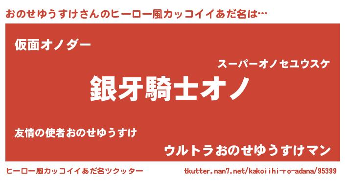 | 男性向けラノベタイトル風あだ名 | 『おのせゆうすけの嫁は女の子じゃないと思った?』 |