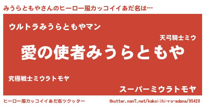 | 男性向けラノベタイトル風あだ名 | 『ノーゲーム・ノーミウラトモヤ』 |