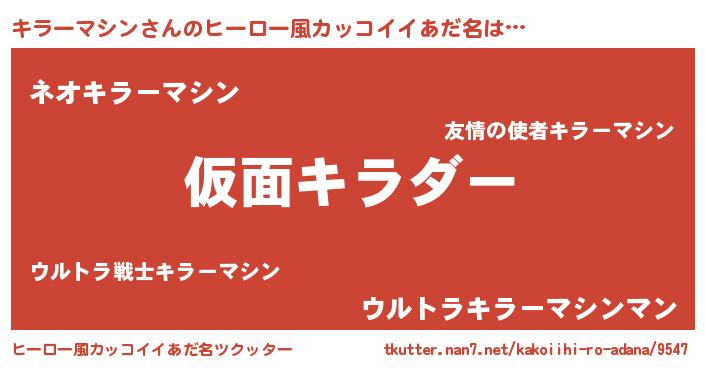 | 男性向けラノベタイトル風あだ名 | 『この素晴らしい世界にキラーマシンを!』 |