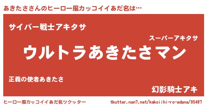 | 男性向けラノベタイトル風あだ名 | 『転生したらあきたさだった件』 |