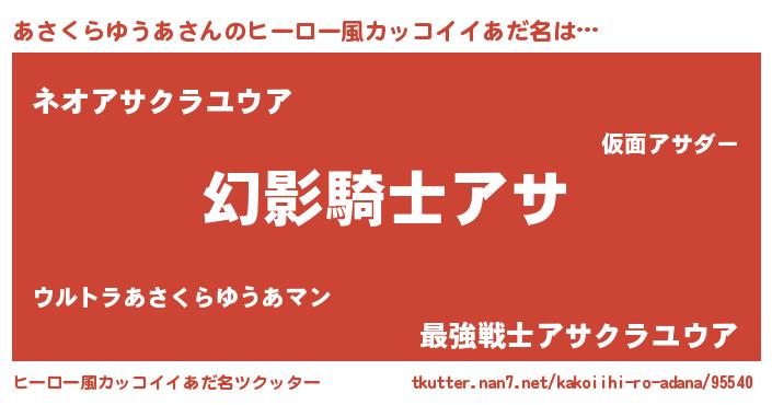 | ポケモン風あだ名 | 『ヒアサクラユウア』『アサゴンZ』 |