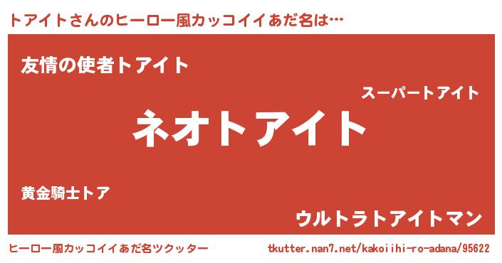 | ヘコむあだ名 | 『トアイト(小並感)』『なまこ酢』 |