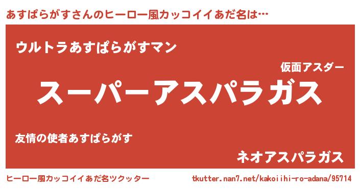 | 男性向けラノベタイトル風あだ名 | 『あすぱらがすの憂鬱』 |