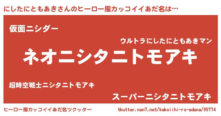 | ヘコむあだ名 | 『にしたにともあき(遠い目)』『にしもー』 |