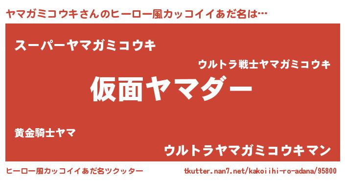 | 男性向けラノベタイトル風あだ名 | 『ヤマガミコウキ~年齢イコール彼女いない歴の魔法使い~』 |