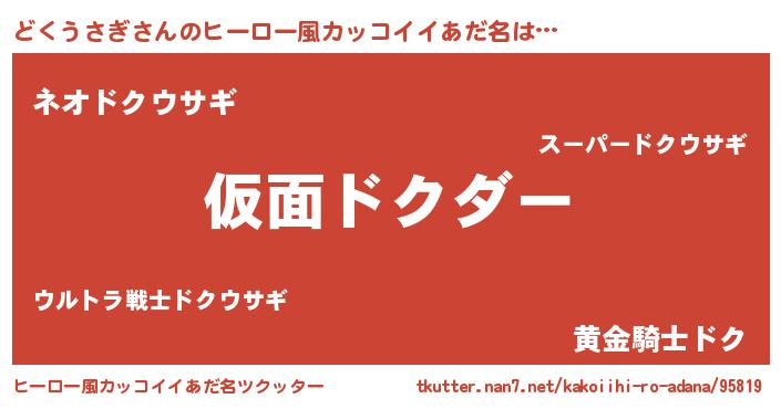 | 男性向けラノベタイトル風あだ名 | 『この素晴らしい世界にどくうさぎを!』 |