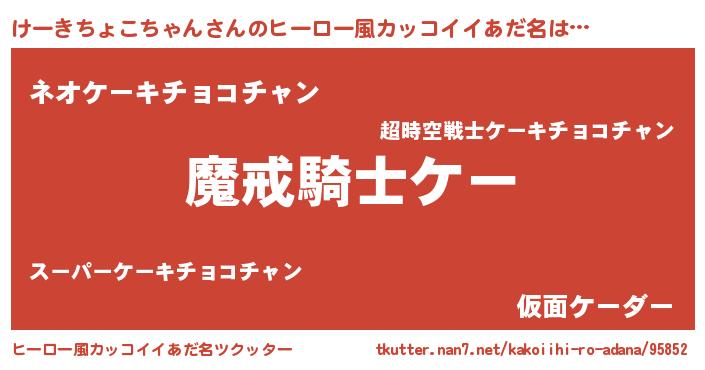 | 女子向けラノベタイトル風あだ名 | 『けーきちょこちゃんの卵を拾いまして』 |