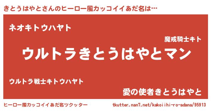 | 男性向けラノベタイトル風あだ名 | 『やはりきとうはやとの青春ラブコメはまちがっている 』 |