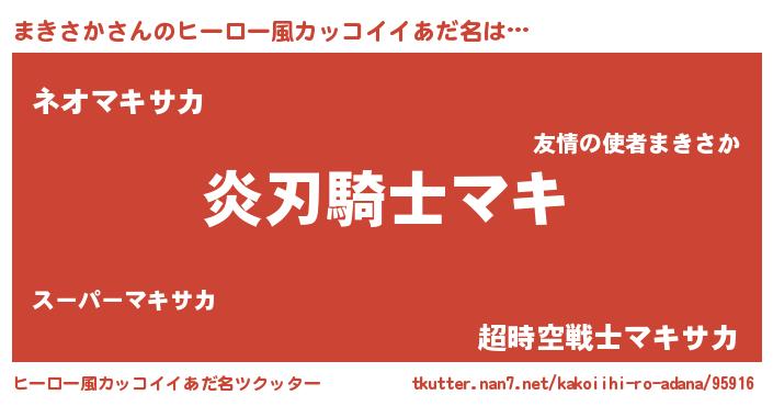 | 男性向けラノベタイトル風あだ名 | 『まきさかに滅ぼされるだけの簡単なお仕事です』 |