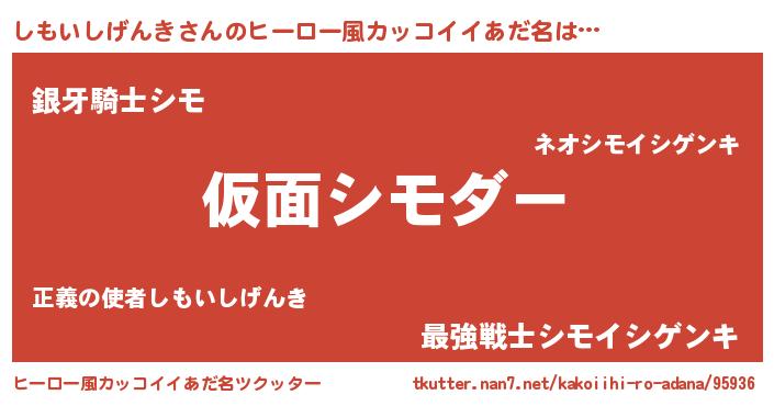 | 男性向けラノベタイトル風あだ名 | 『魔弾の王としもいしげんき』 |