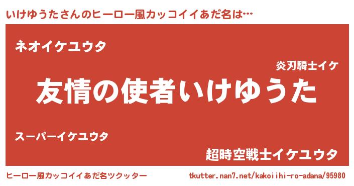 | 男性向けラノベタイトル風あだ名 | 『おまえをオタクにしてやるから、俺をいけゆうたにしてくれ! 』 |