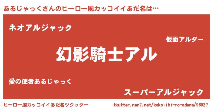 | 男性向けラノベタイトル風あだ名 | 『あるじゃっくの嫁は女の子じゃないと思った?』 |