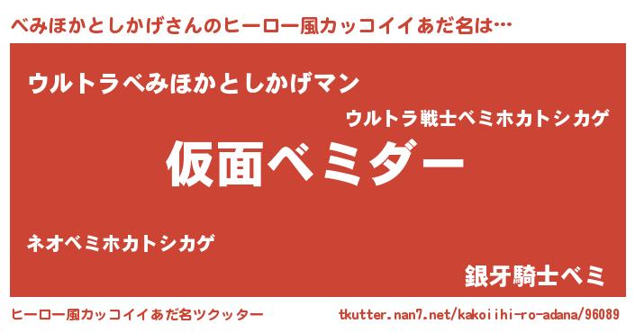 | 意味不明あだ名 | 『住所不定無職べみほかとしかげ(50歳)』 |