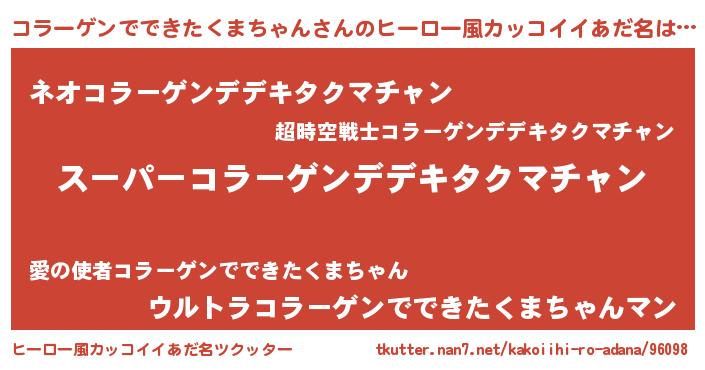 | 男性向けラノベタイトル風あだ名 | 『緋弾のコラーゲンデデキタクマチャン』 |