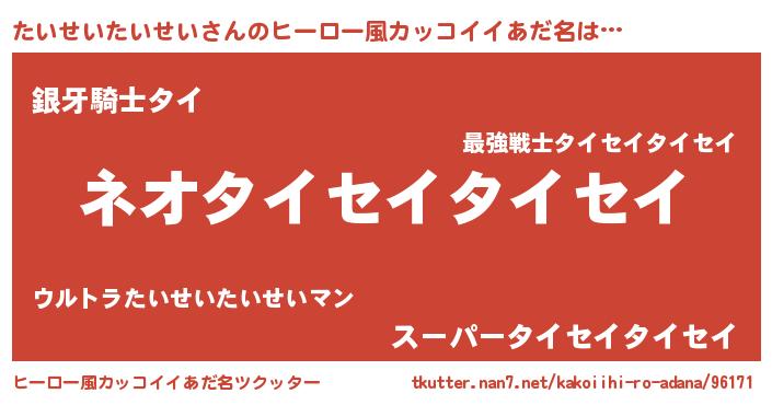 | 伝説のあだ名 | 『古文書に記された勇者たいせいたいせい』 |