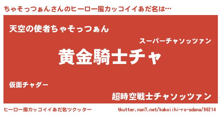 | 女子向けラノベタイトル風あだ名 | 『ちゃそっつぁんは平凡を望む』 |