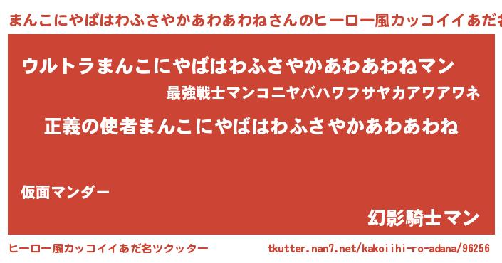 | 男性向けラノベタイトル風あだ名 | 『おまえをオタクにしてやるから、俺をまんこにやばはわふさやかあわあわねにしてくれ! 』 |