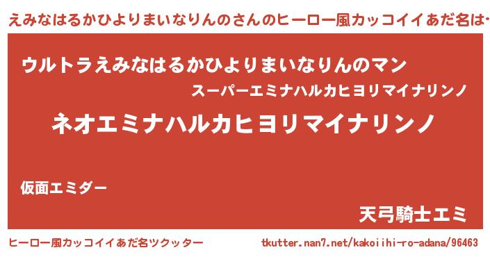 | 胡散臭い通販商品みたいなあだ名 | 『来世でも幸せになれる水素水…その名も「えみなはるかひよりまいなりんの」』 |